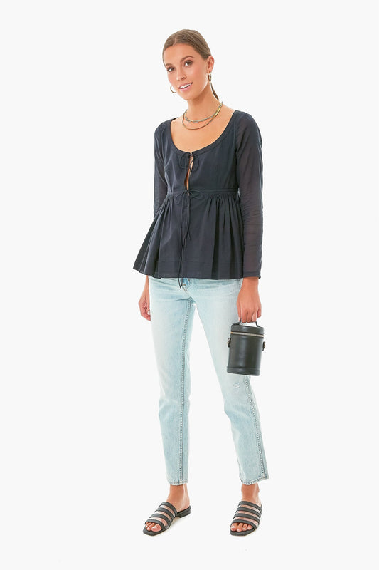 Navy Heidi Heart Quilted Flutter Sleeve Tank Top