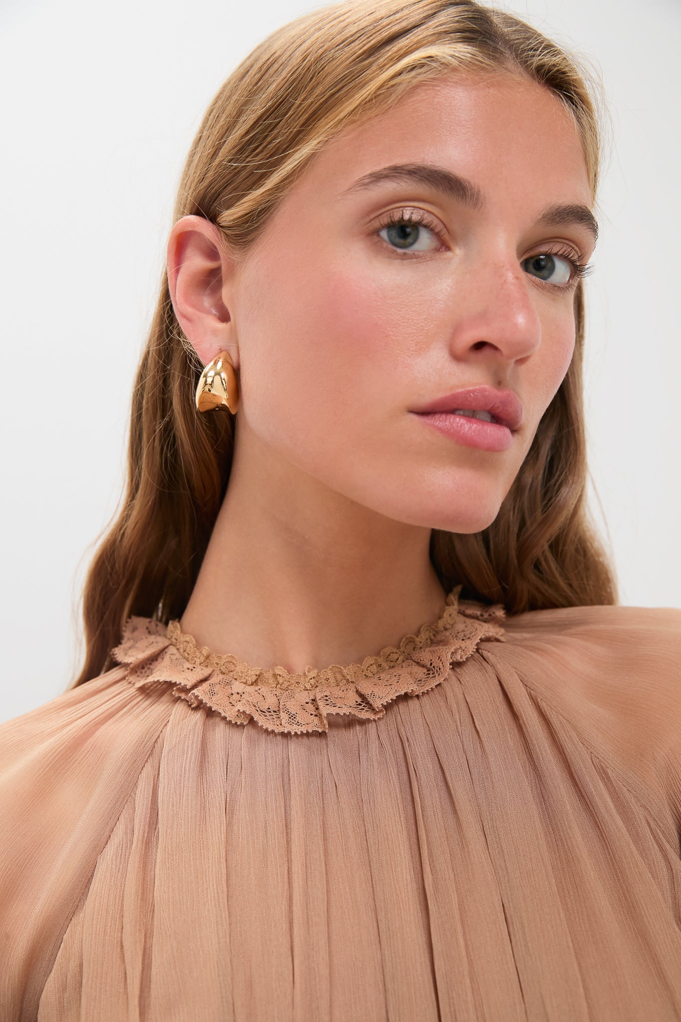 This romantic maxi dress features a peplum waist, frilled stand collar, long sleeves with loose cuffs and cascading frills throughout. Pair with neutral heels and a clutch for an effortlessly elegant look.