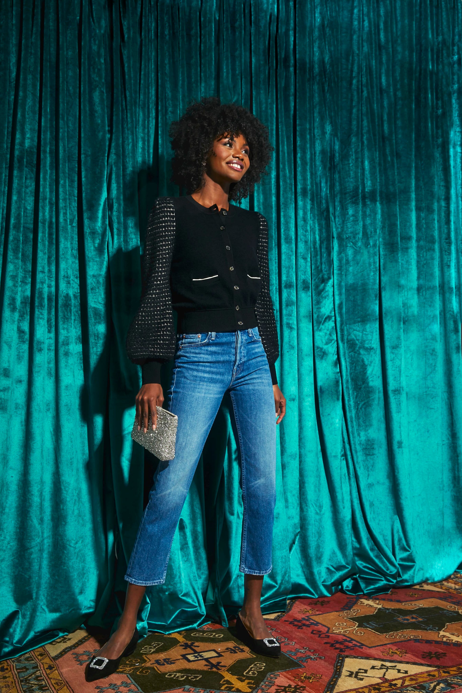 The Black Buckle Up Flat are holiday party-ready! A pearl and crystal embellished classic silhouette make these a fun addition to your wardrobe. Pair with cocktail dresses or feminine tops and leather pants!