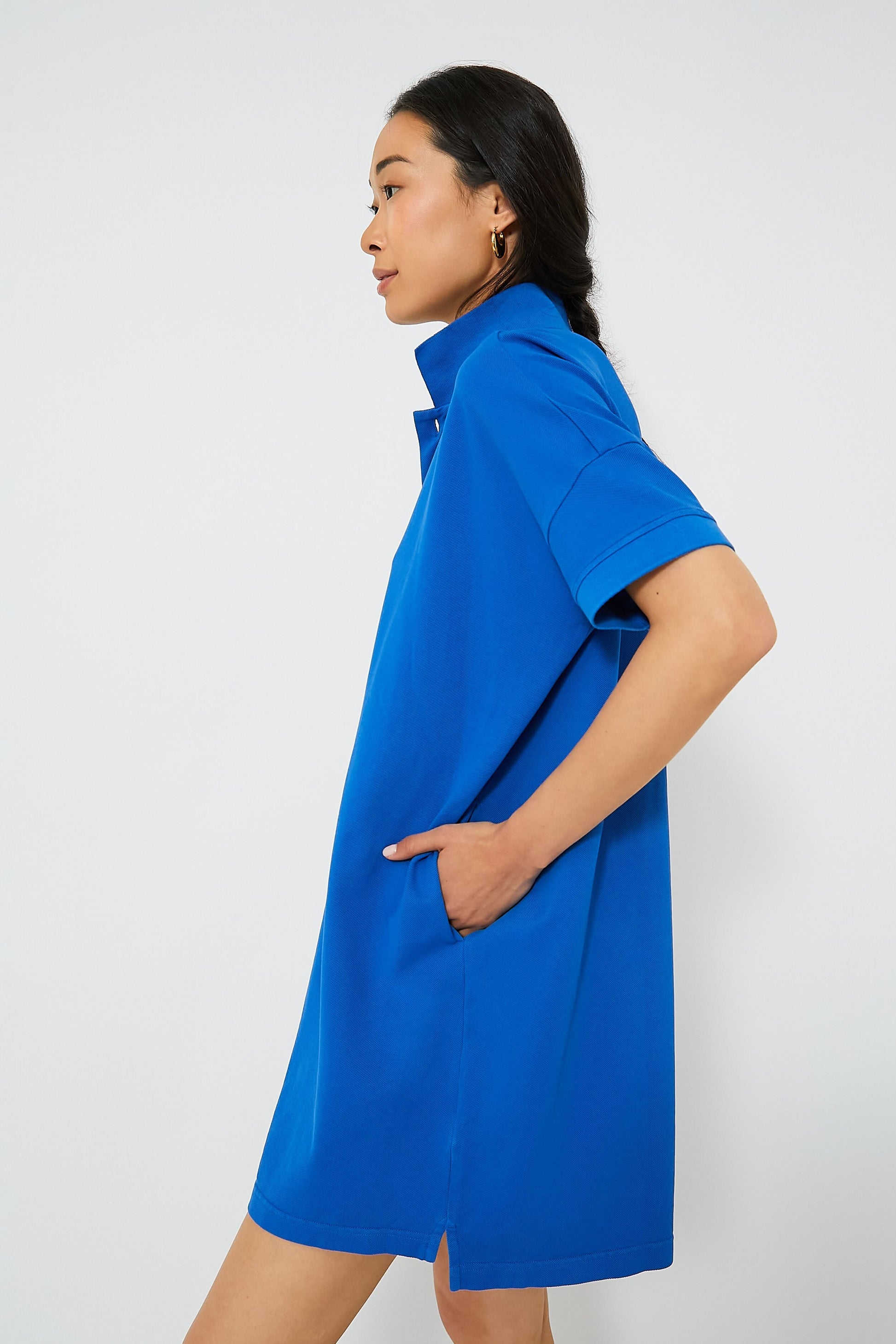 Inspired by wearing your Dad's favorite polo, the Pique Teller Polo Dress is meant to have a "From His Closet" fit. This top features all of our favorite details from the Holmes Polo, but in an oversized dress version. Made with functional-yet-chic details, such as drop shoulders, side pockets, and a slight high-low hem, this mini is truly the epitome of a closet staple. Wear over a bathing suit with sandals for strolling around a beach town, or with sneakers, a baseball hat, and a jean jacket tied around your waist for a city-casual ensemble.
