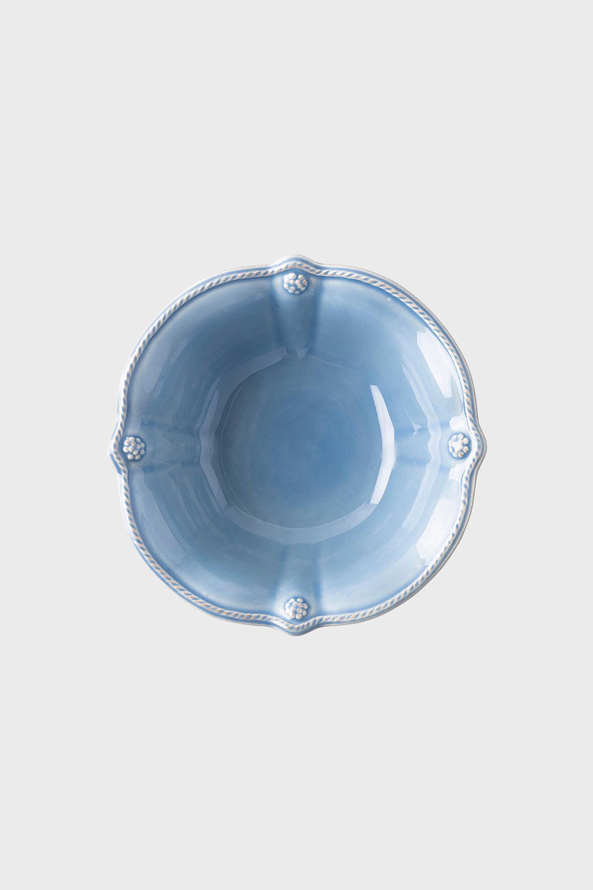 From the Berry & Thread Collection - Rimmed with a simple thread and adorned with a sprinkling of berries, this iconic dinnerware collection embraces historic motifs in a sublime blue hue. This cereal/ice cream bowl, featuring a subtly scalloped edge, will quickly become a staple of your cupboard.