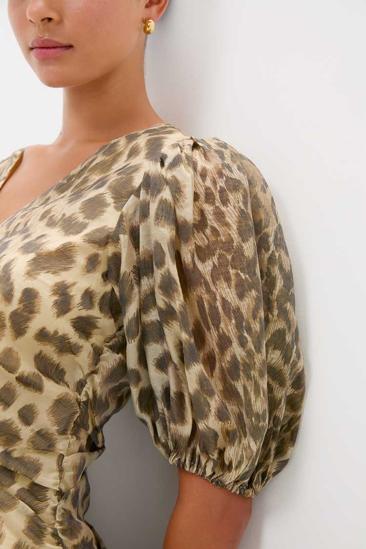 With puff sleeves, a ruched bodice, and a flowy midi length, this midi nails that effortless mix of bold and feminine. Dress it down with sneakers for brunch or throw on heels for a night out—it’s a wear-anywhere kind of piece.