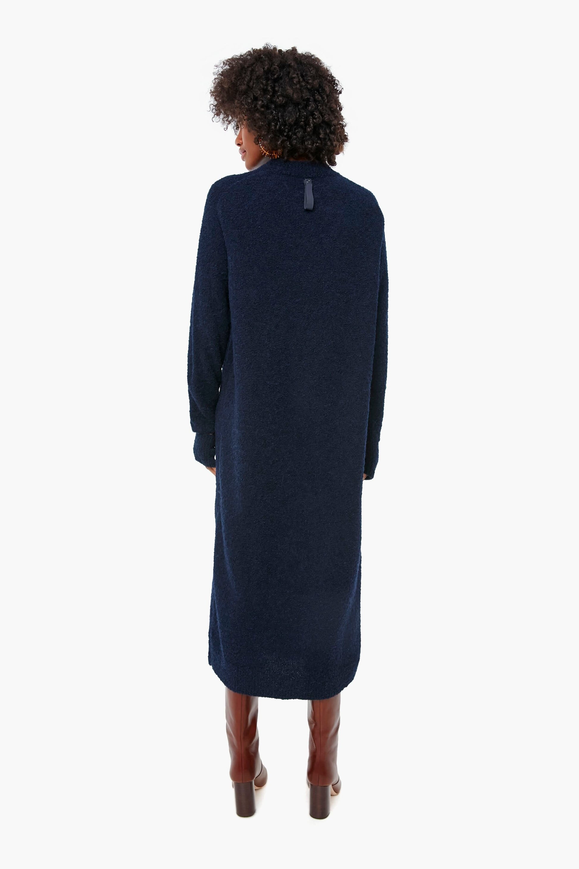 Dark Navy Boucle Alpaca Slit Cuff Easy Dress