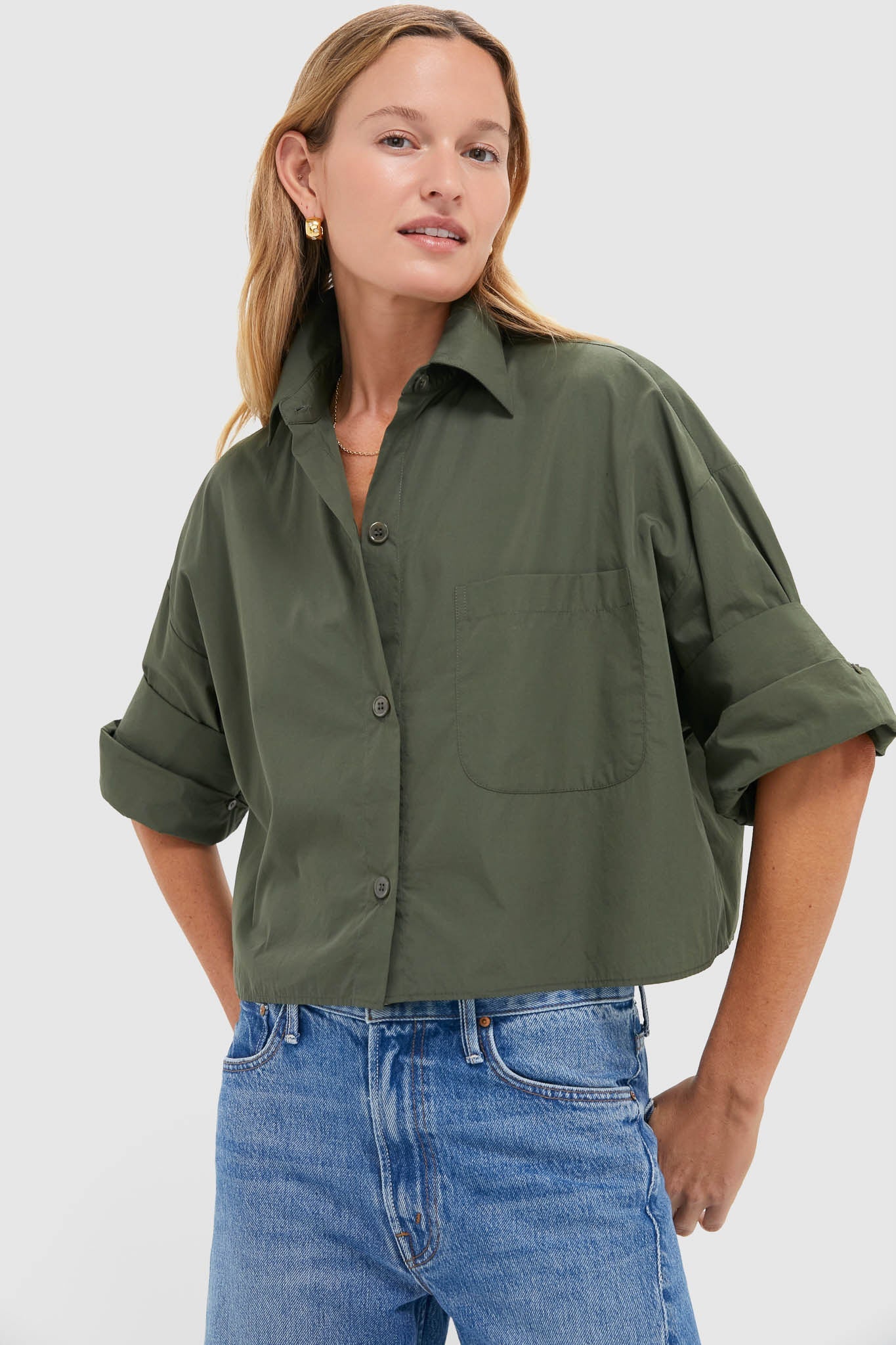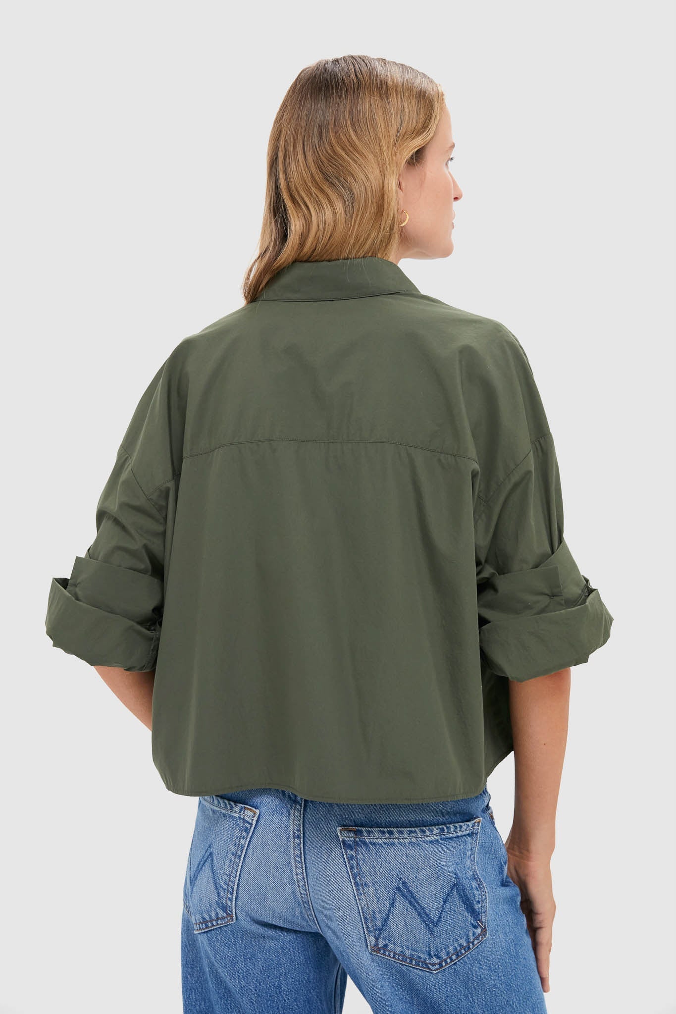 The Next Ex shirt is a cropped, boxy silhouette complete with a chest patch pocket, spread collar, and TWP's signature double roll button cuffs. Pair with denim and sneakers for a step up from casual, or with with a maxi skirt and boots!