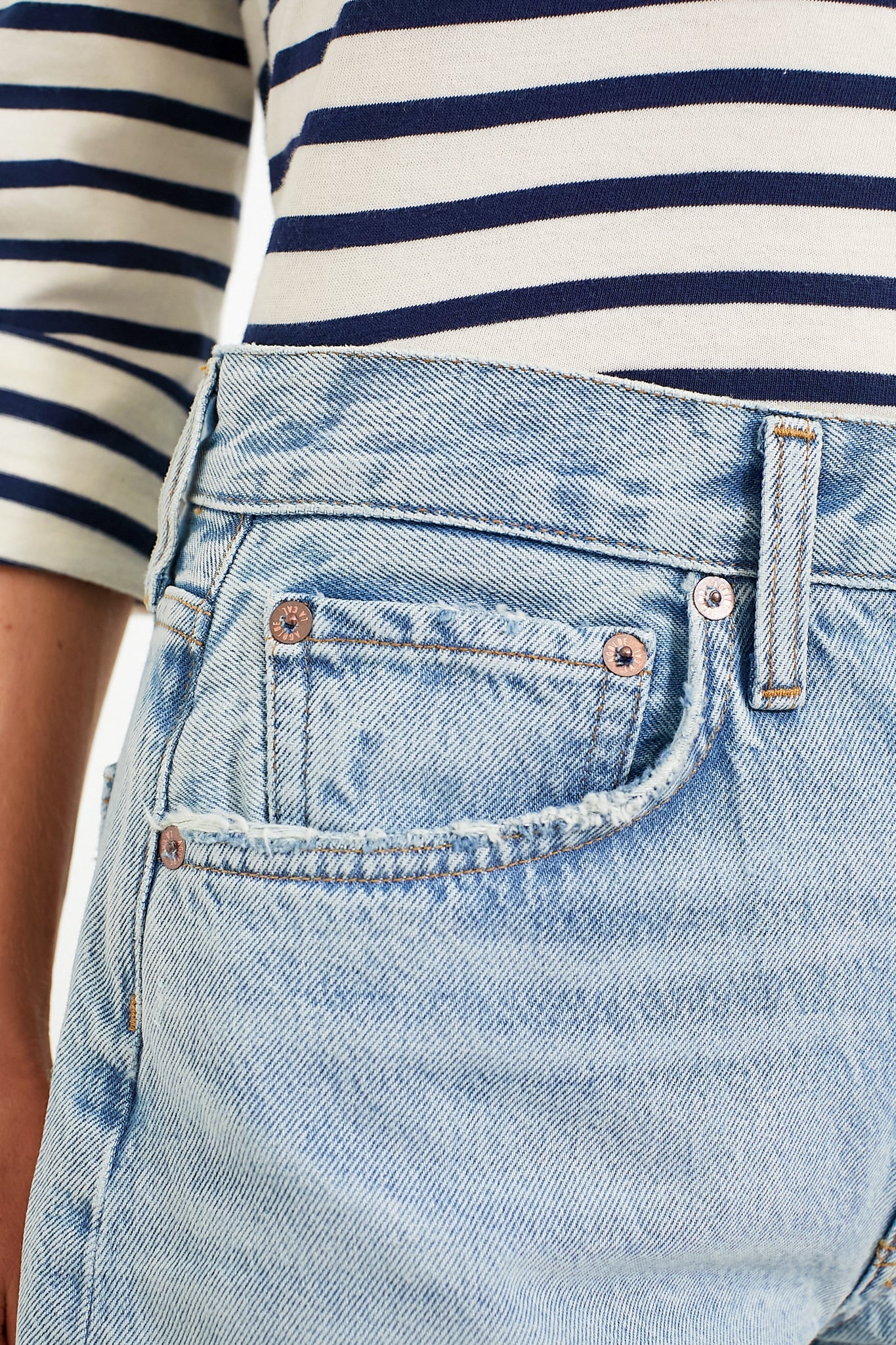 • Distressed hem