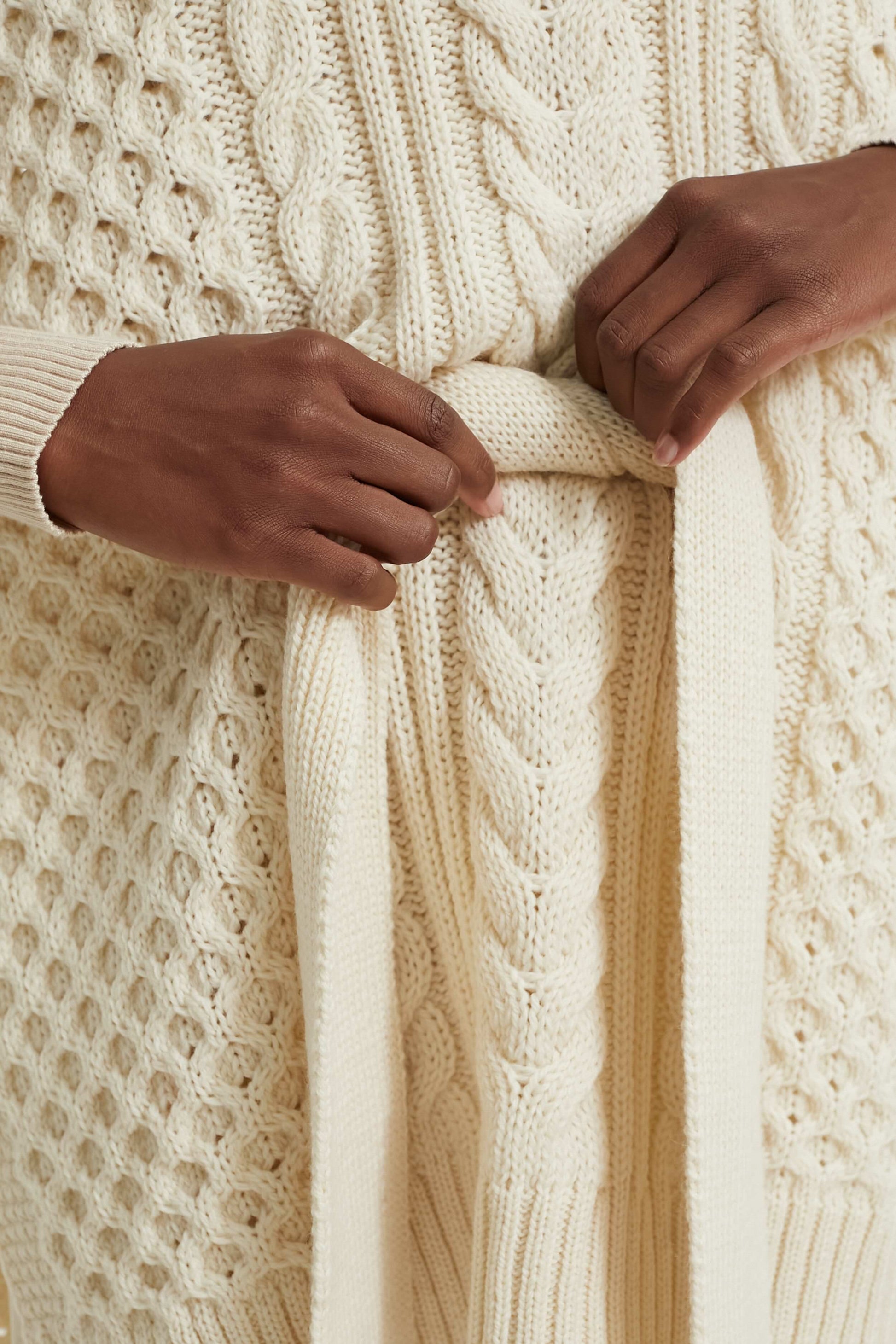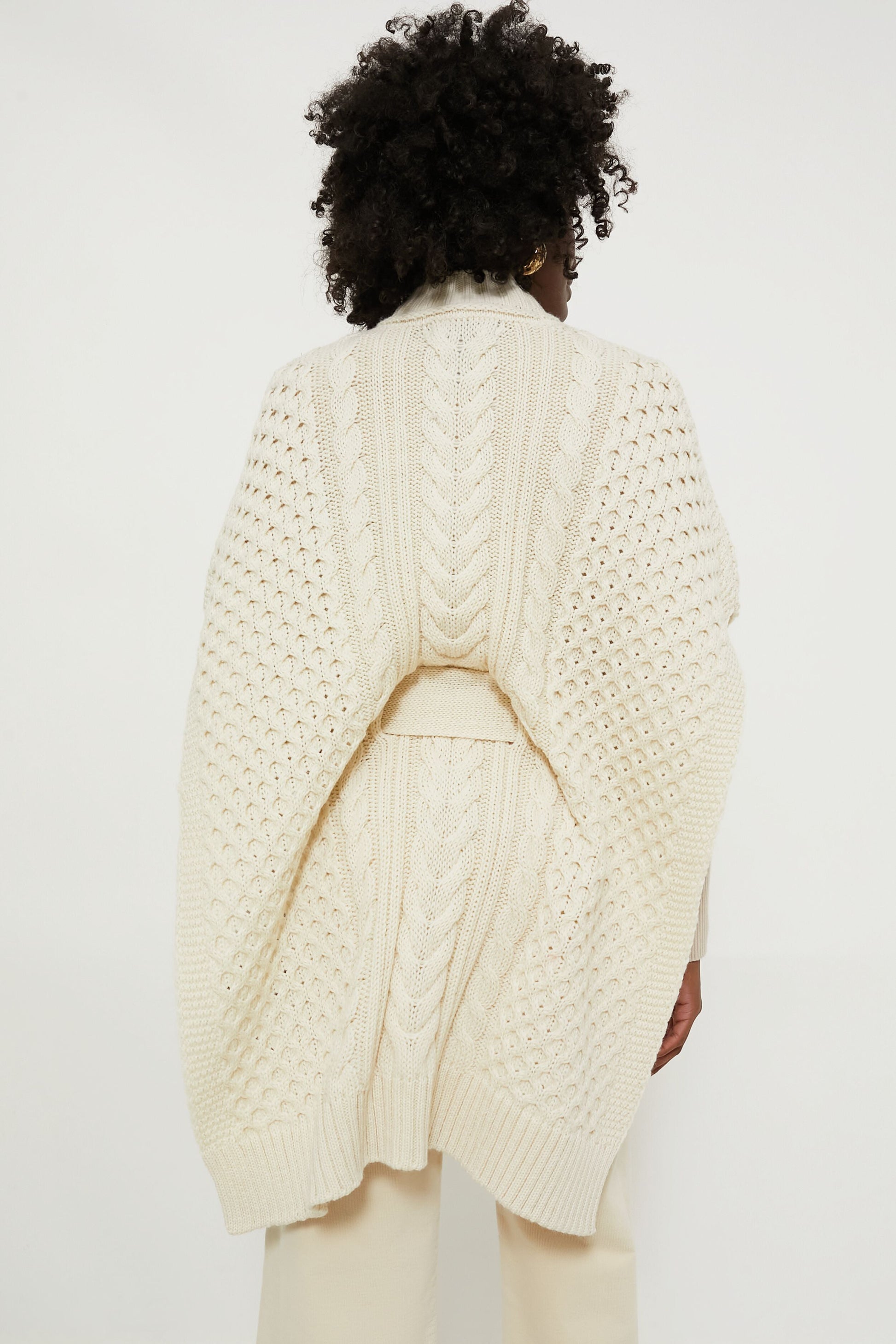 Prepare for all things cozy in the Natural Crocus Horseshoe Cable Cape! Featuring a mock neckline, dropped shoulders, and an adjustable waist tie to cinch it for a flattering shape, this new neutral ensures warmth and breathability. Complete with ribbed detailing and cable stitching for gorgeous texture, this knit drapes elegantly down the body. Style it over long sleeve, paired with denim and boots to relax by the fireplace or journey into the chilly outside for a coffee run.