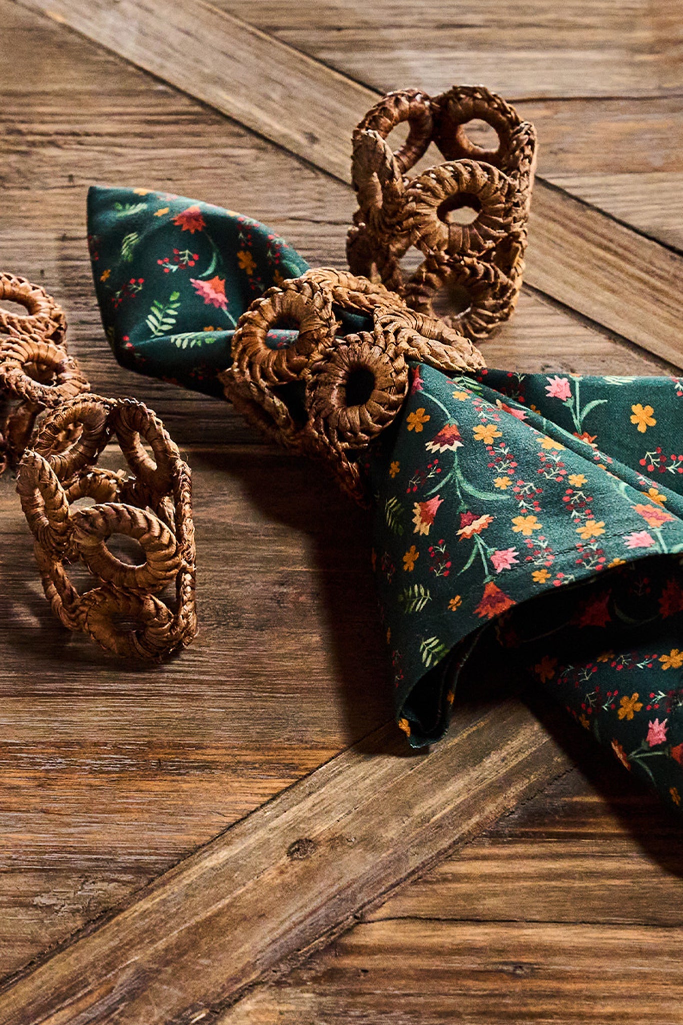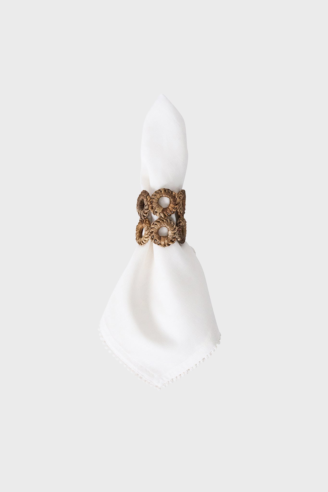 Fabulously versatile, these handwoven woven abaca napkin rings are naturally chic adornment to complete any table setting. Set of 4.