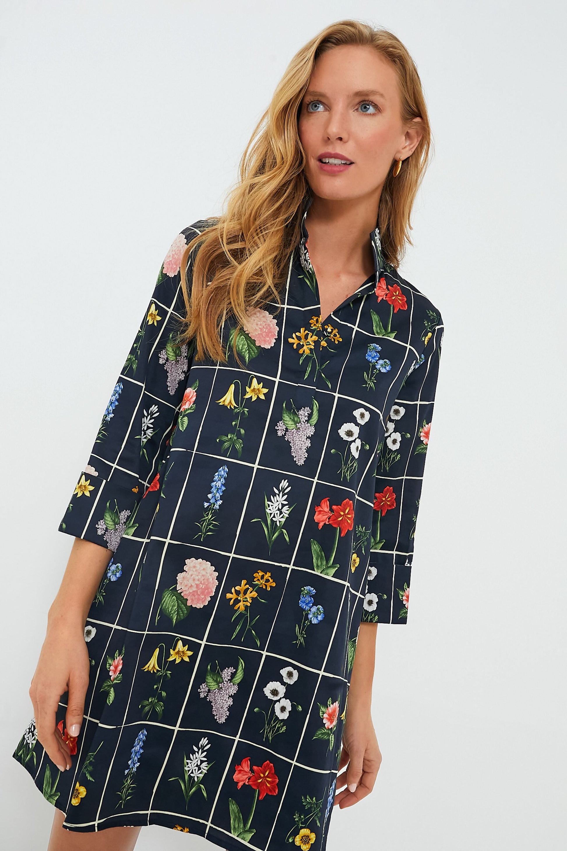 Boxy yet feminine, the Navy Fresh Buds Megan Dress has caught our eye. Featuring three-quarter length sleeves, a stand collar, V-neckline, and an A-line shift fit, this mini will carry you from work to happy hour with ease. A Tuckernuck favorite, we are wearing this year round with just a change of shoes: flats in the spring, sandals in the summer, and boots into the fall and winter months, it's just that easy.