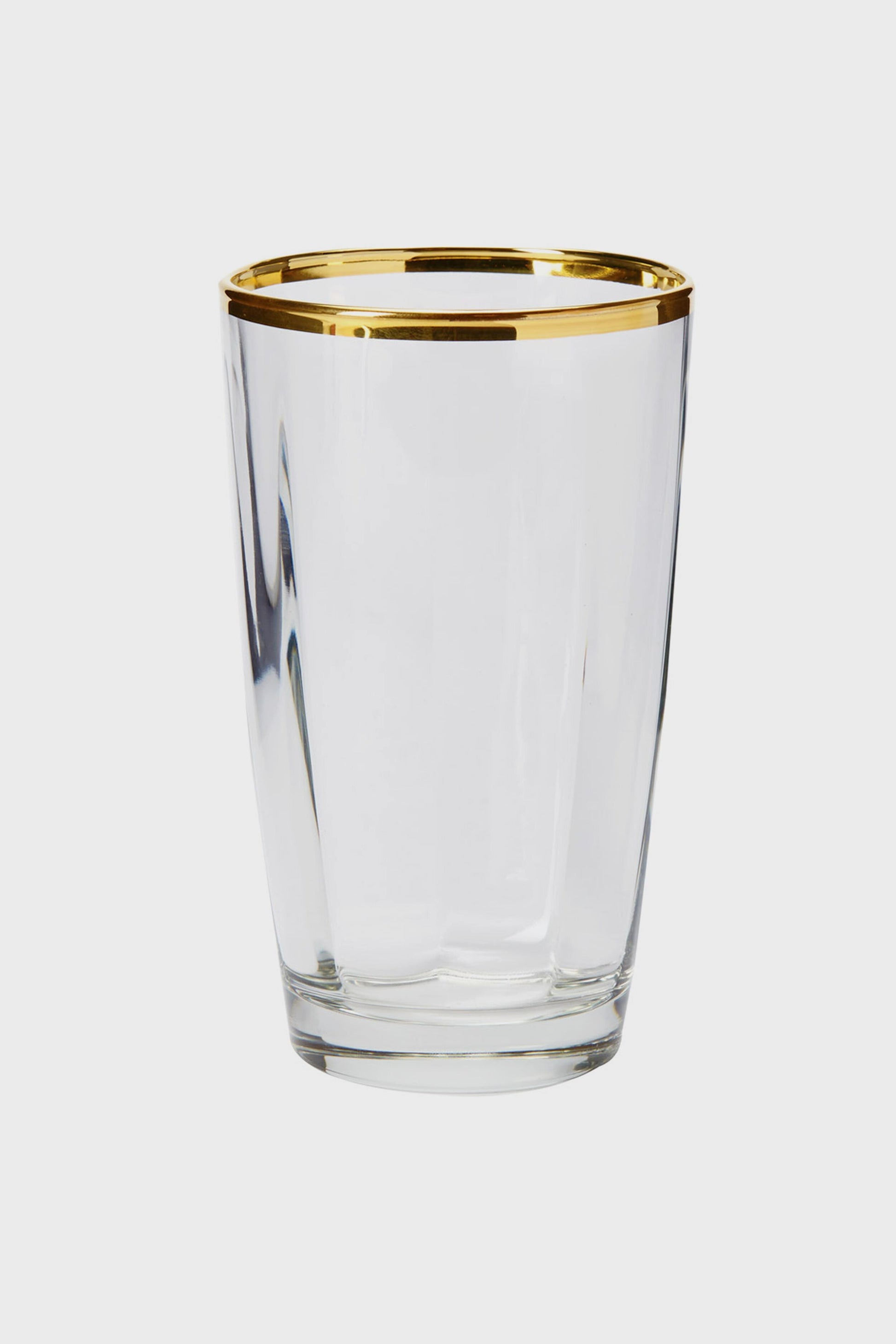 The Optical Gold High Ball glass is a brilliant addition to your barware collection. The elegant gilded rim adds effortless sophistication to any table or bar, and the sleek silhouette gives a modern and chic look.