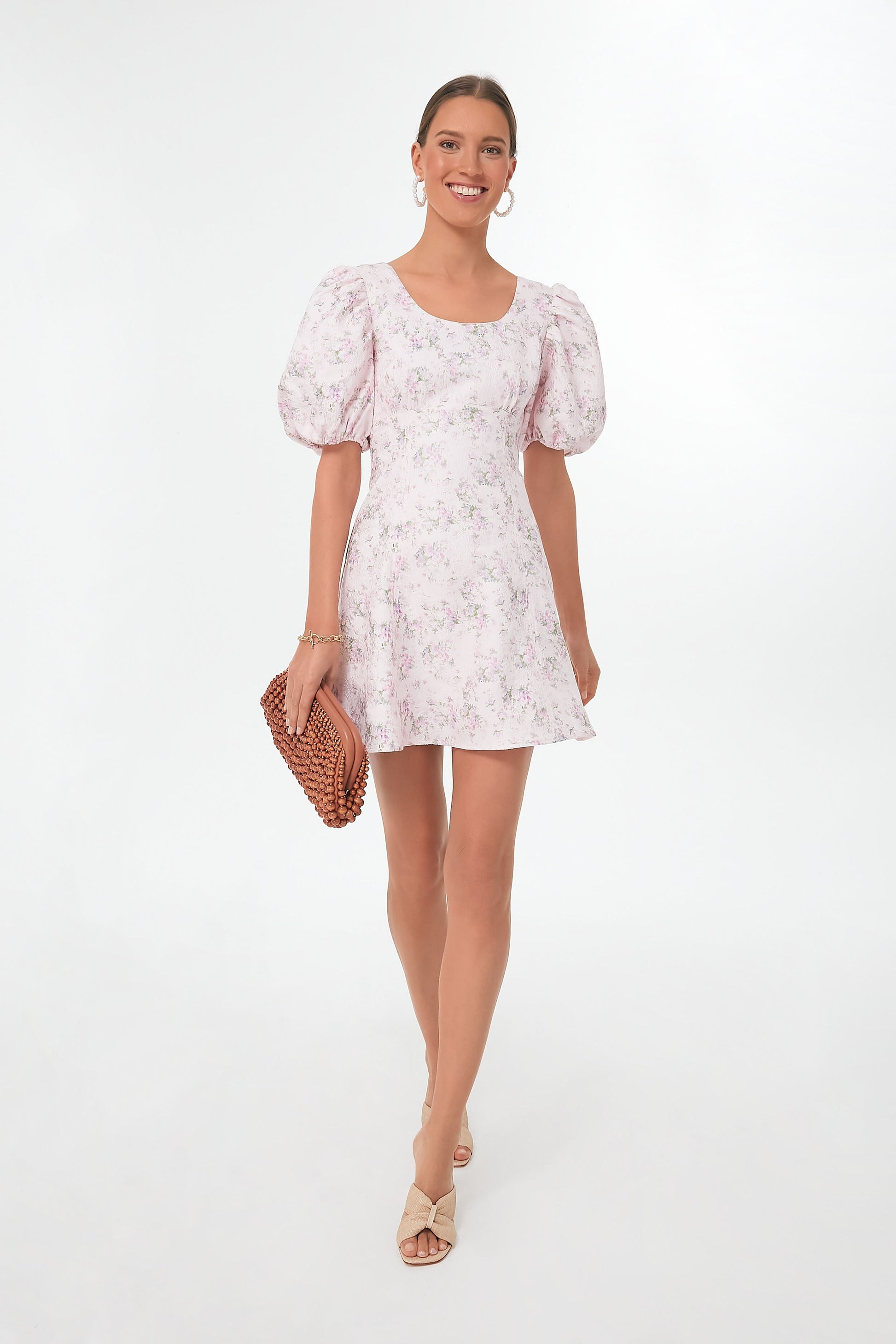 A sweet floral print sits atop a luxe jacquard fabric to make the Ella Dress. The easy choice for weddings and soirees of any kind, this flirty mini features a scoop neckline, puffed sleeves, and empire silhouette. We're pairing with neutral heels and pearl accessories for a perfectly polished look that's sure to gather compliments!