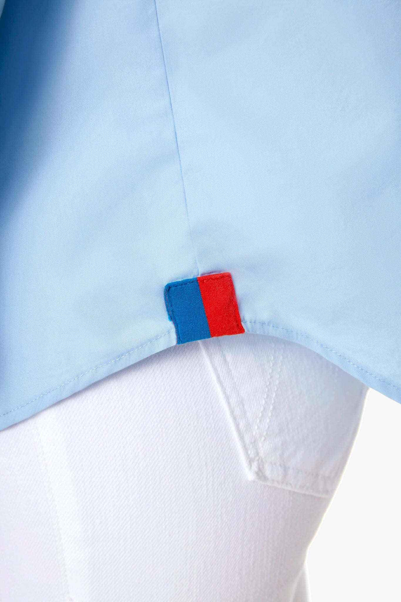 • Blue and red stripe logo on the shirttail