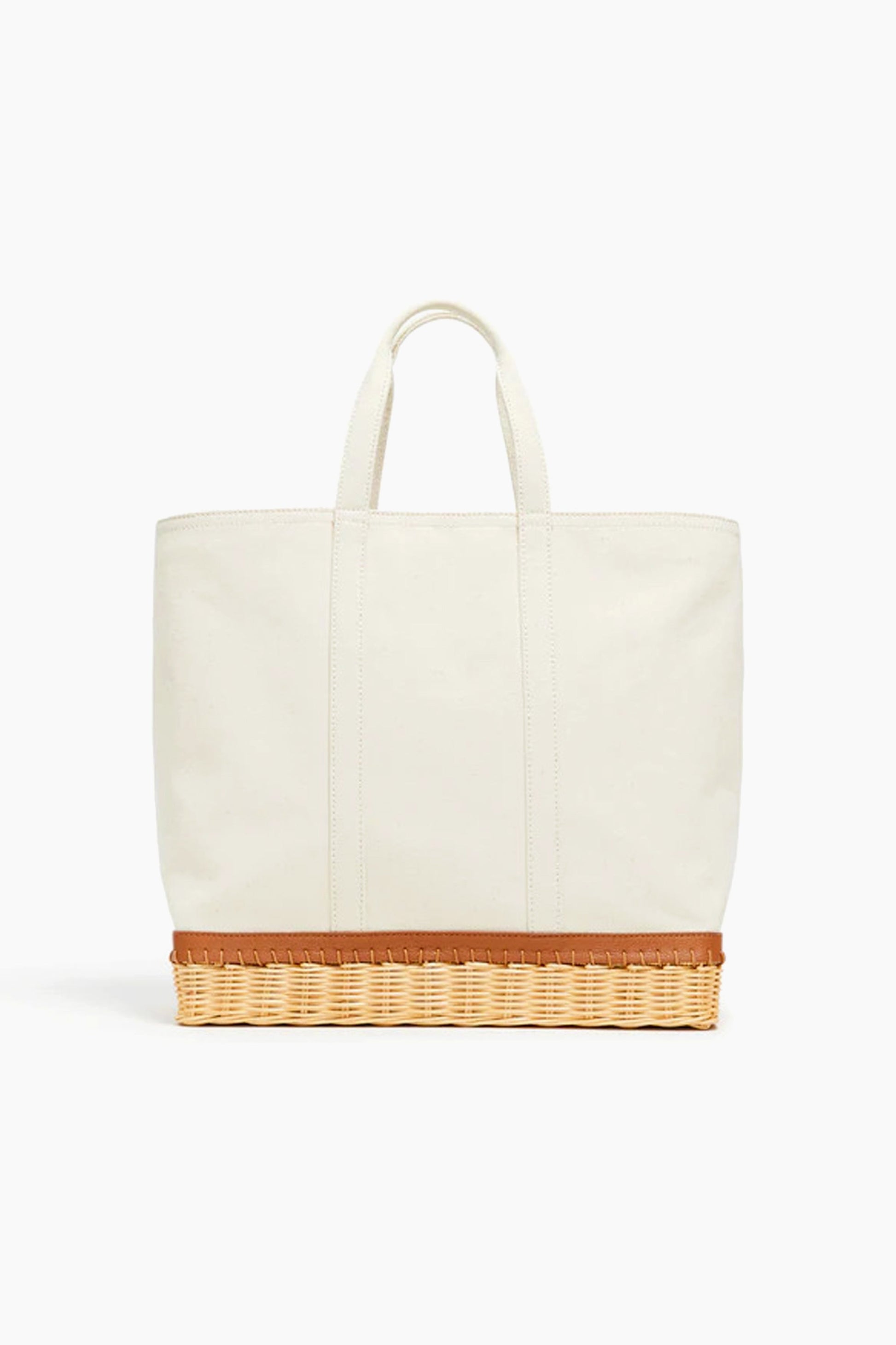 - Material: Canvas, Handwoven rattan, Leather, Lined in cotton