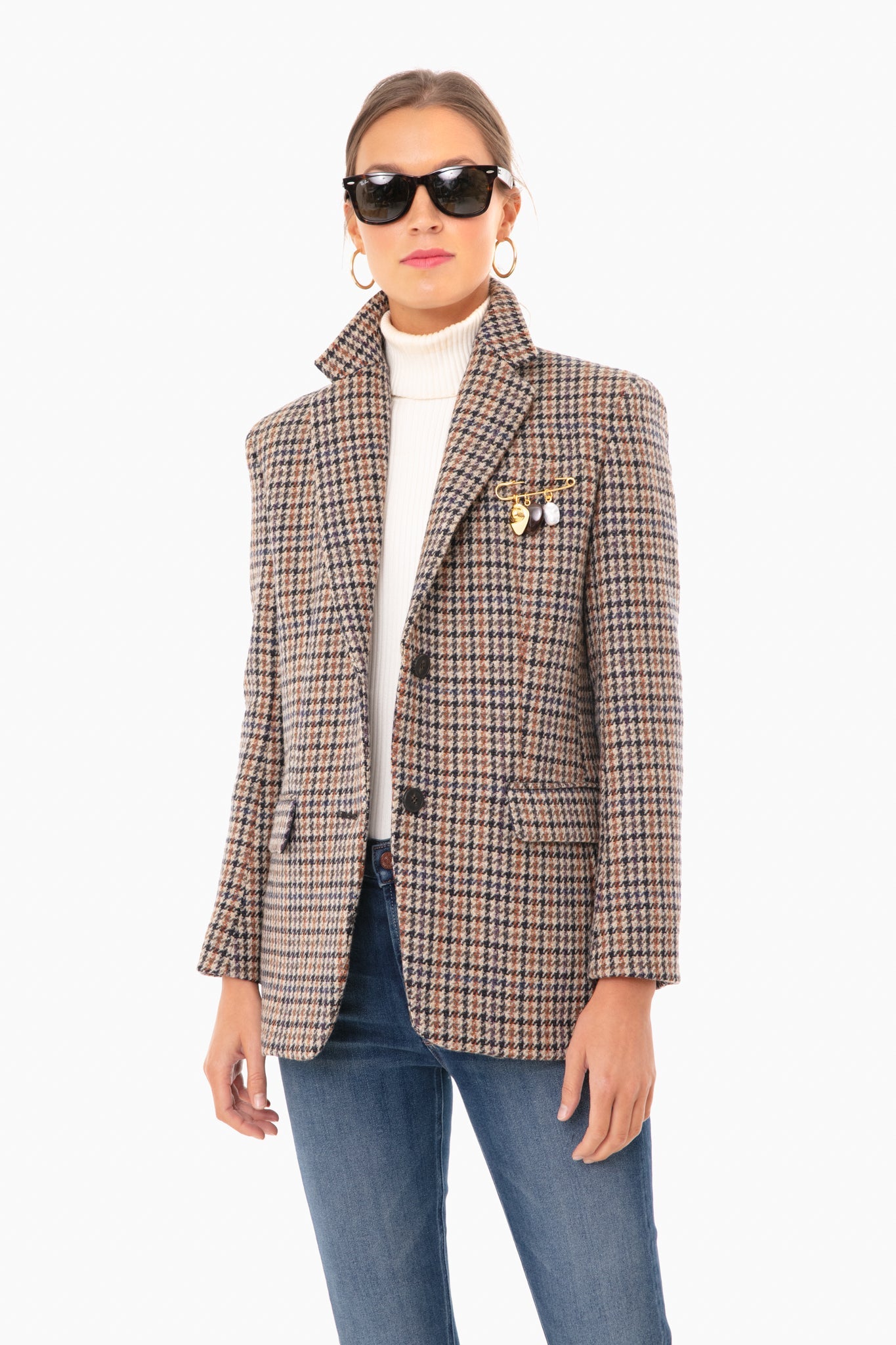 The Tortoise Heart Memento Pin is made with a gold-plated brass oversized pin with freshwater pearl, gold-plated, and tortoise-colored acrylic heart charms. Wear on a blazer or chunky knit for a fun pop to your look!