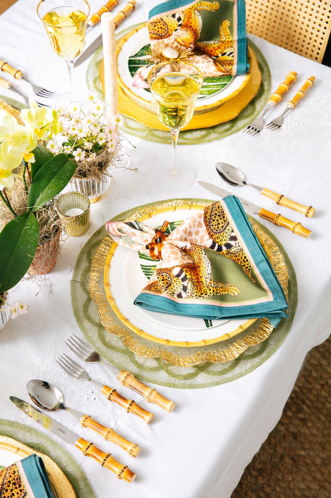 Subtle and classic these napkin rings feature looping swirls of translucent ambers and browns. Your napkins will be neatly tied for a crisp and clean look!